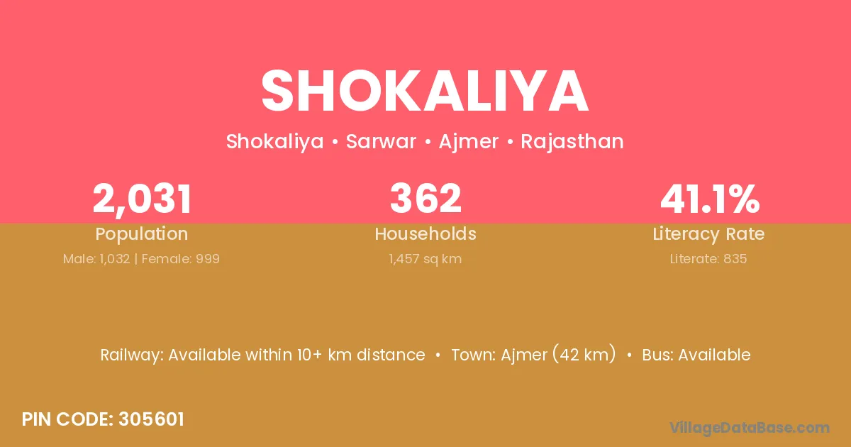 Ajmer (42 km) is the nearest town to Shokaliya village for major economic activities and is located approximately 42 km away.