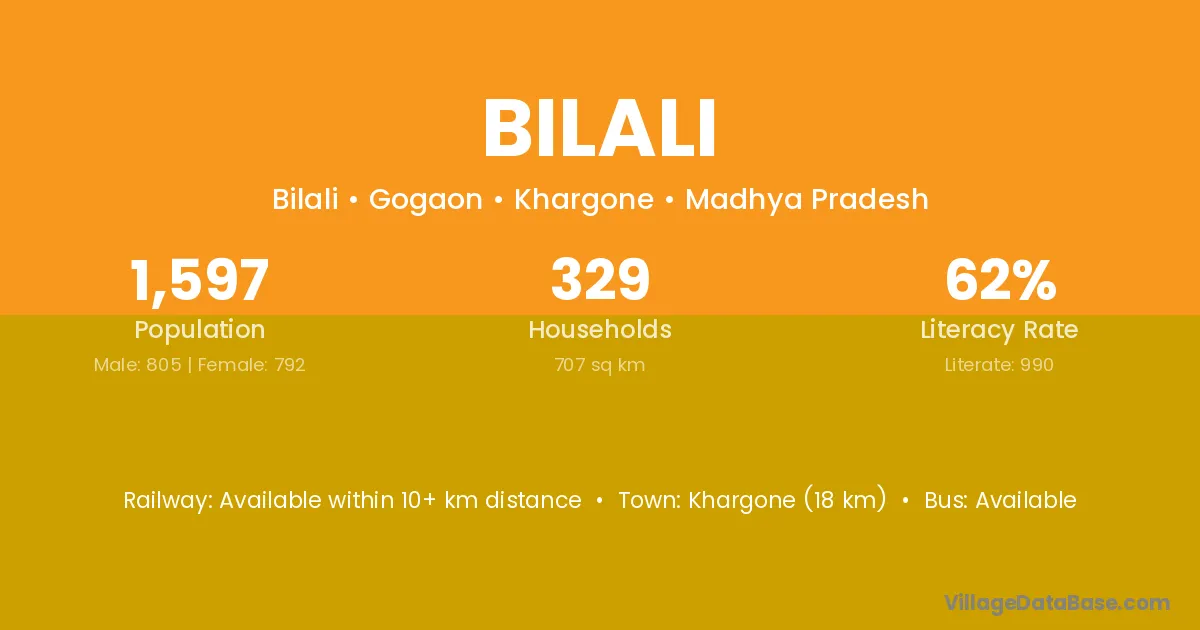 The literacy rate of Bilali village is 48.50%. Male literacy stands at 60.77% and female literacy at 34.58%.