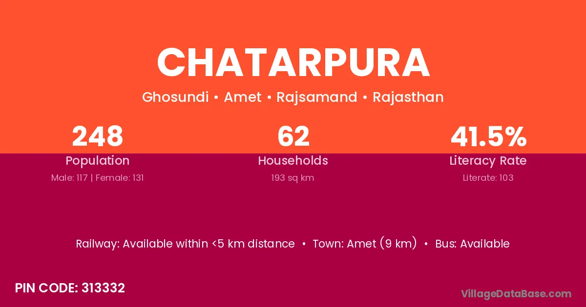 Kotputli (22 km) is the nearest town to Chatarpura village for major economic activities and is located approximately 22 km away.