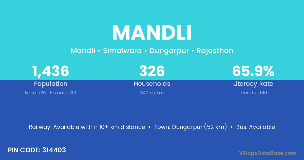 Kotputli (13 km) is the nearest town to Mandli village for major economic activities and is located approximately 13 km away.
