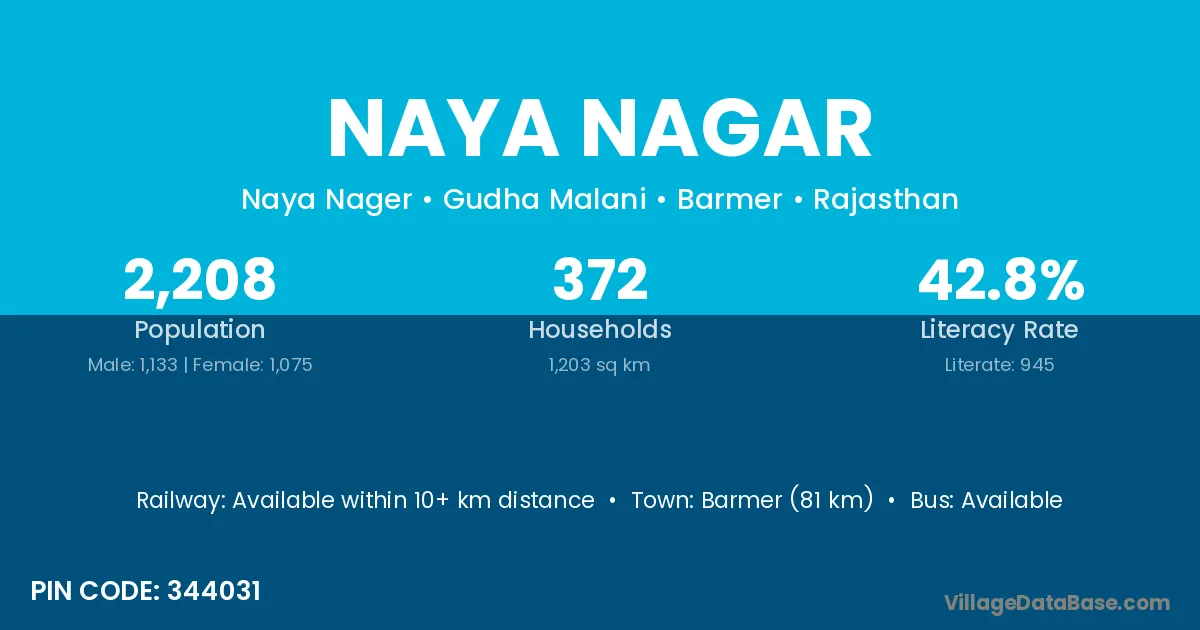 Kotputli (17 km) is the nearest town to Naya Nagar village for major economic activities and is located approximately 17 km away.