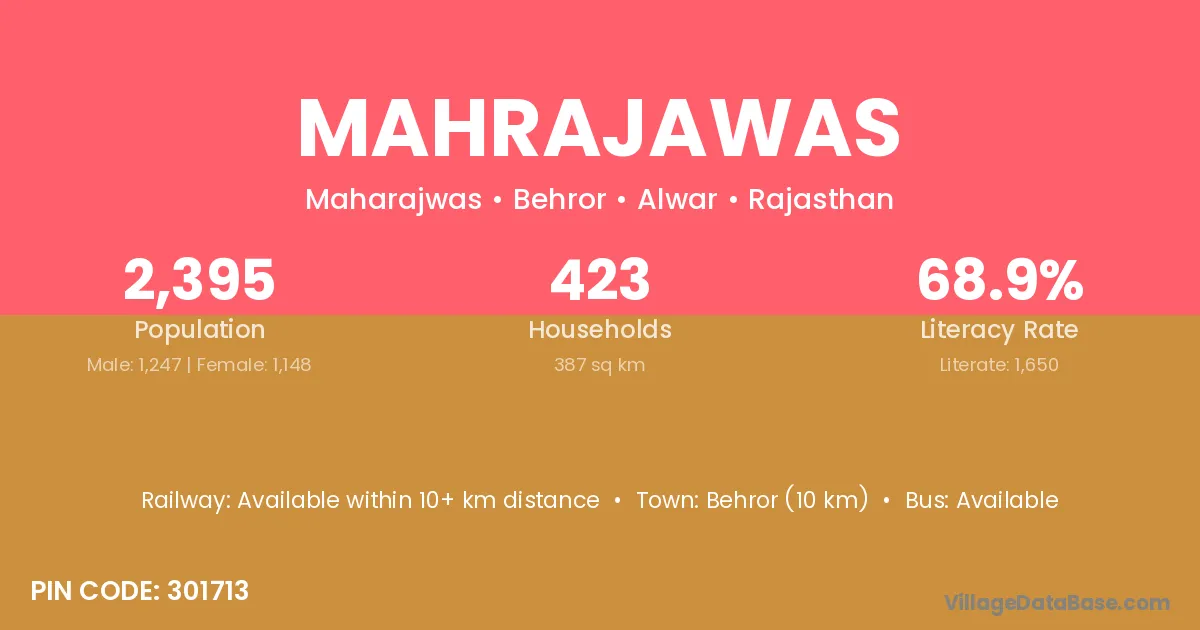 Behror (10 km) is the nearest town to Mahrajawas village for major economic activities and is located approximately 10 km away.