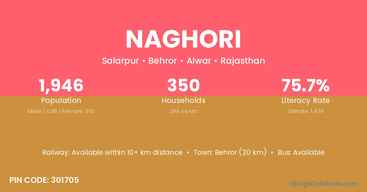 Behror (20 km) is the nearest town to Naghori village for major economic activities and is located approximately 20 km away.