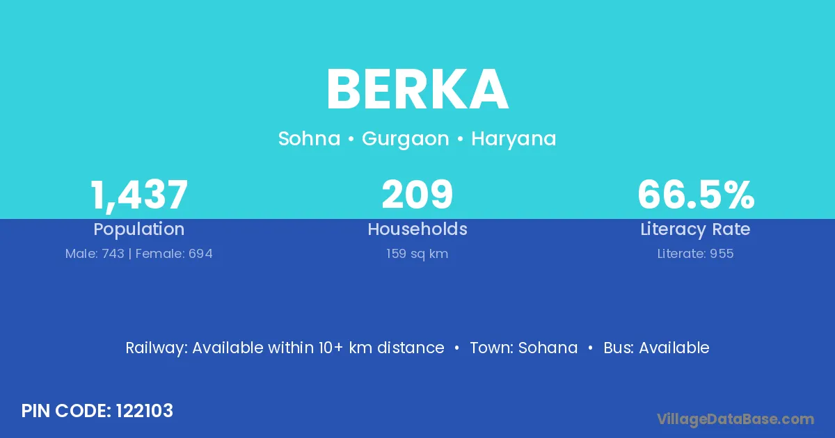 Kherli (16 km) is the nearest town to Berka village for major economic activities and is located approximately 16 km away.