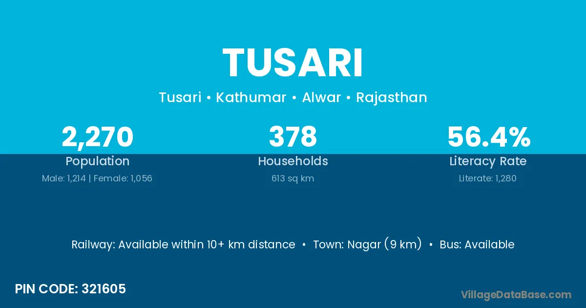 Tusari village has a total population of 2,270 people, of which 1,214 are males and 1,056 are females.