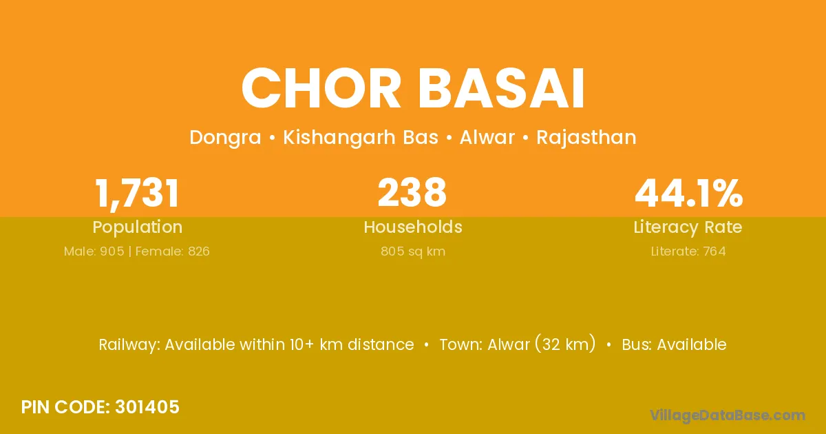 Alwar (32 km) is the nearest town to Chor Basai village for major economic activities and is located approximately 32 km away.