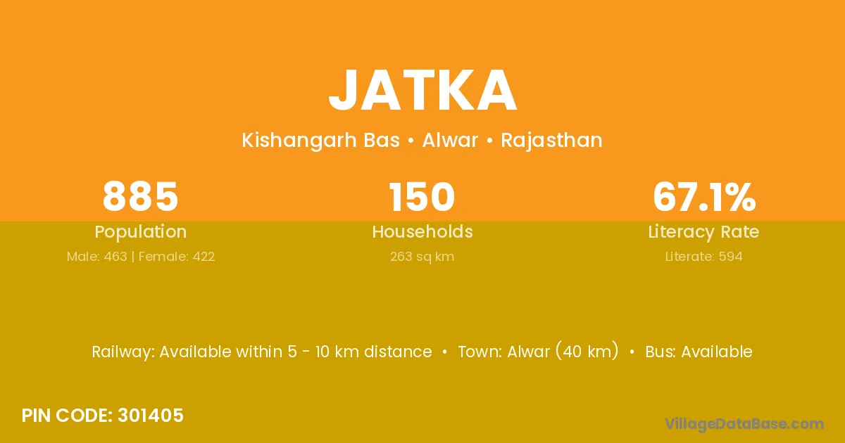 Alwar (40 km) is the nearest town to Jatka village for major economic activities and is located approximately 40 km away.