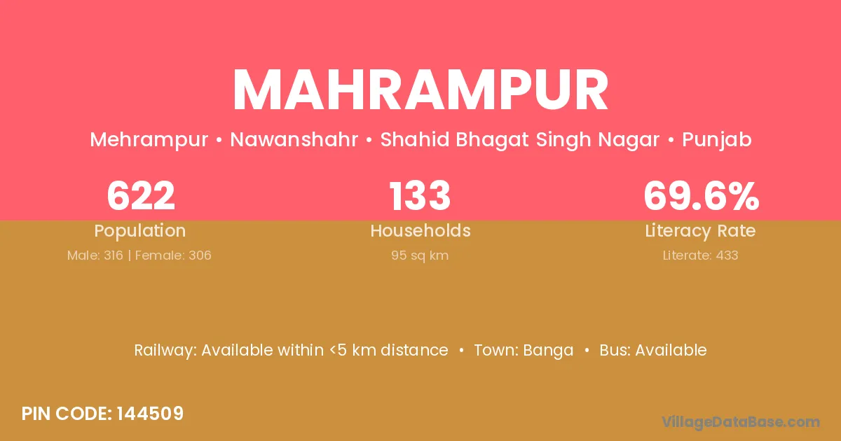 Mahrampur village has a total population of 724 people, of which 376 are males and 348 are females.