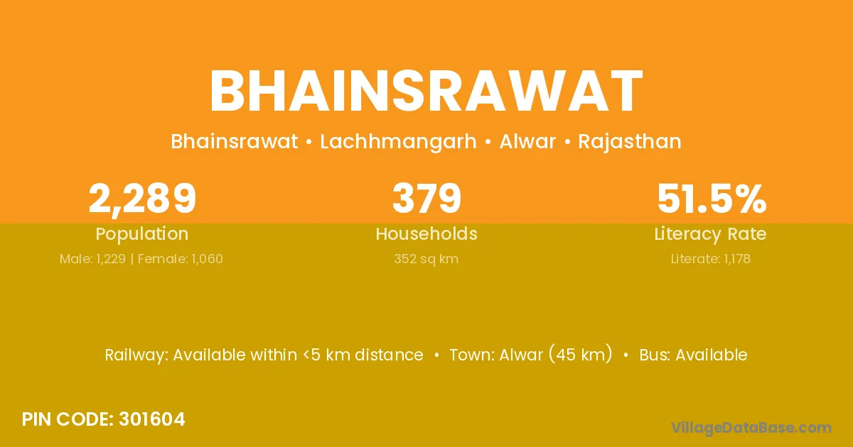 Alwar (45 km) is the nearest town to Bhainsrawat village for major economic activities and is located approximately 45 km away.