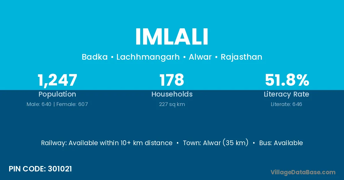 Alwar (35 km) is the nearest town to Imlali village for major economic activities and is located approximately 35 km away.