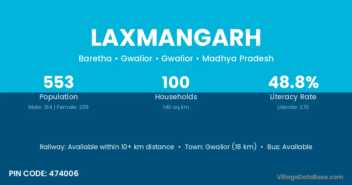Laxmangarh village has a total population of 11,306 people, of which 5,975 are males and 5,331 are females.