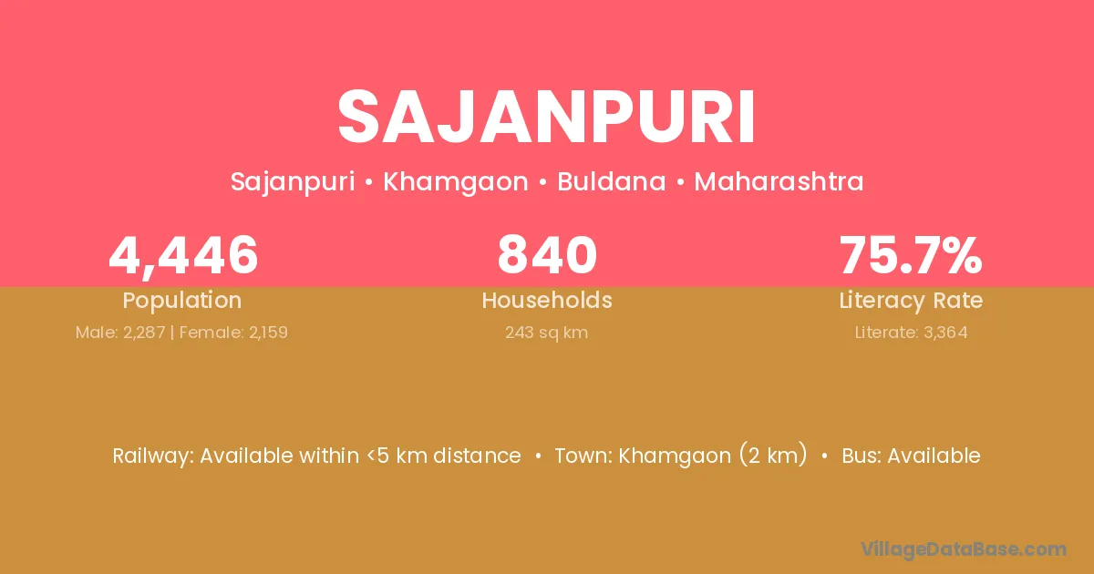 The literacy rate of Sajanpuri village is 47.28%. Male literacy stands at 69.15% and female literacy at 24.55%.