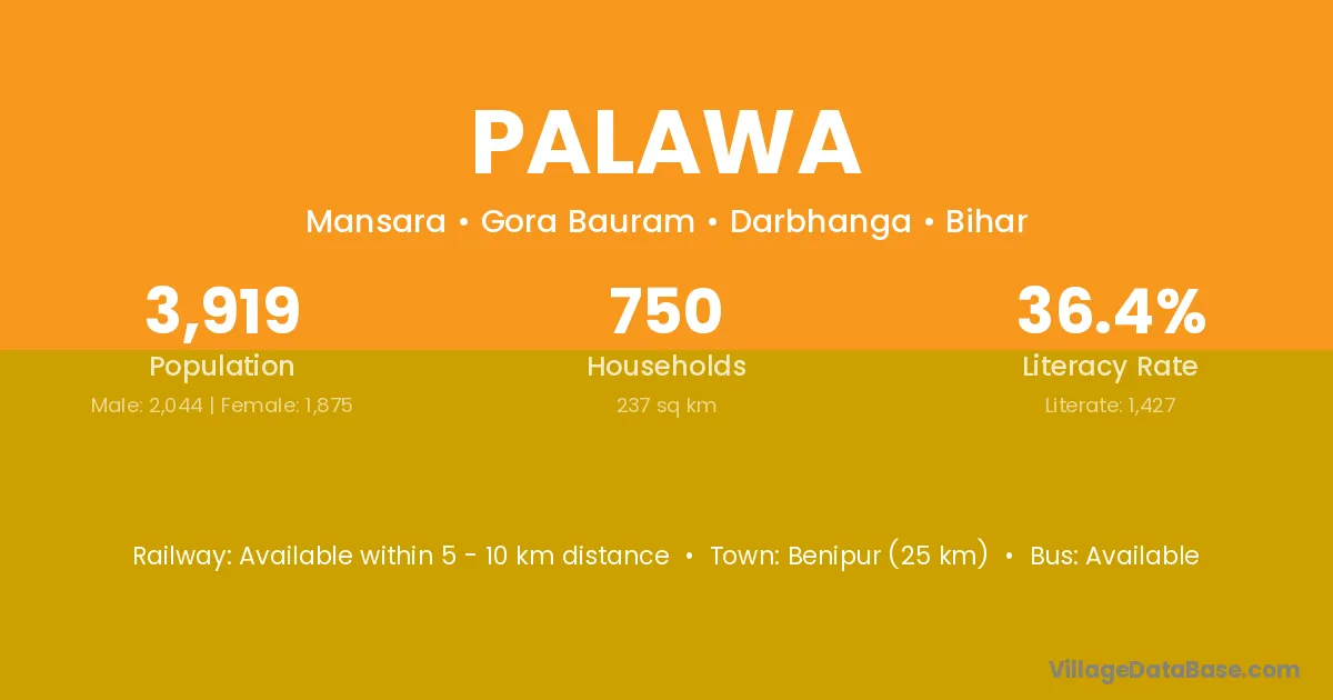 Khairthal (32 km) is the nearest town to Palawa village for major economic activities and is located approximately 32 km away.