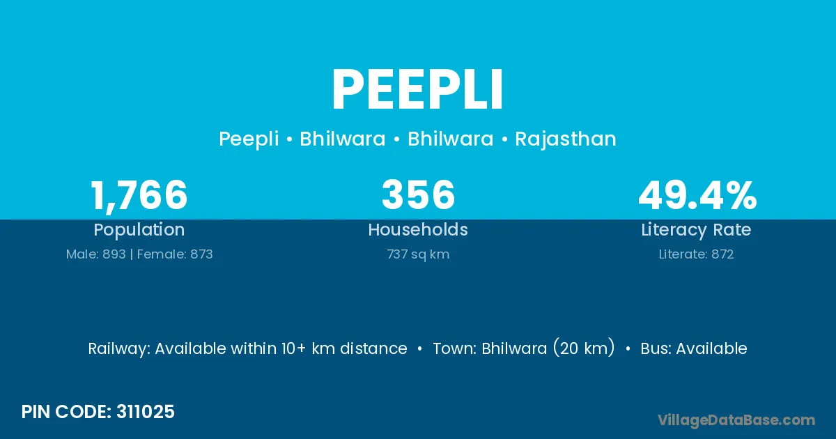 According to Census 2011 information, the village code of Peepli village is 301427.