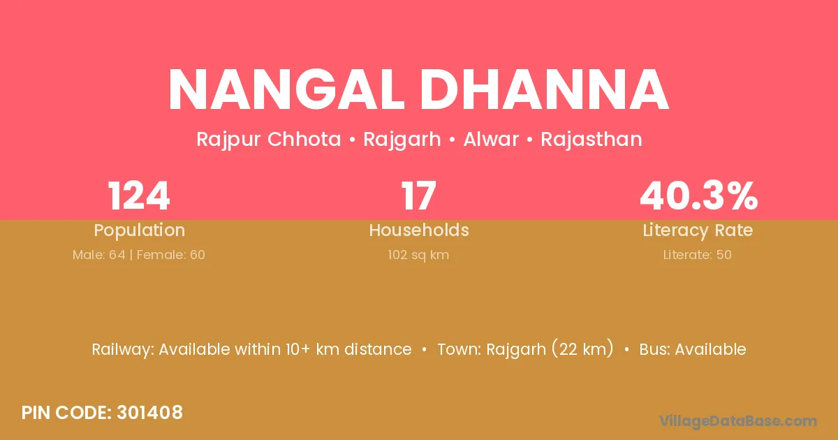 Rajgarh (22 km) is the nearest town to Nangal Dhanna village for major economic activities and is located approximately 22 km away.