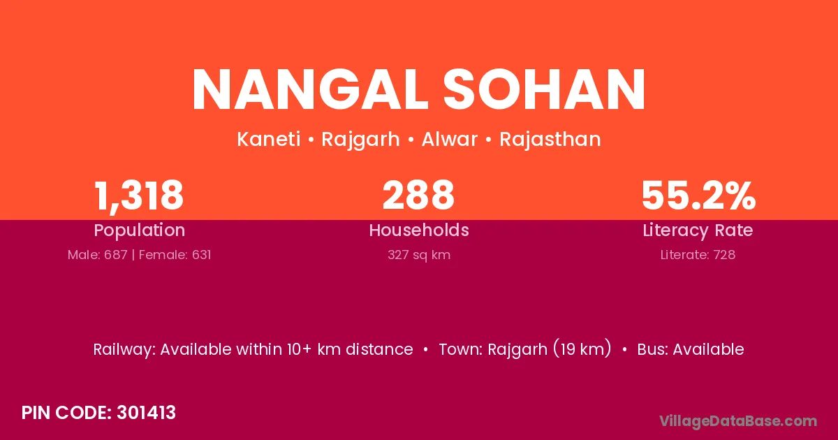 Rajgarh (19 km) is the nearest town to Nangal Sohan village for major economic activities and is located approximately 19 km away.