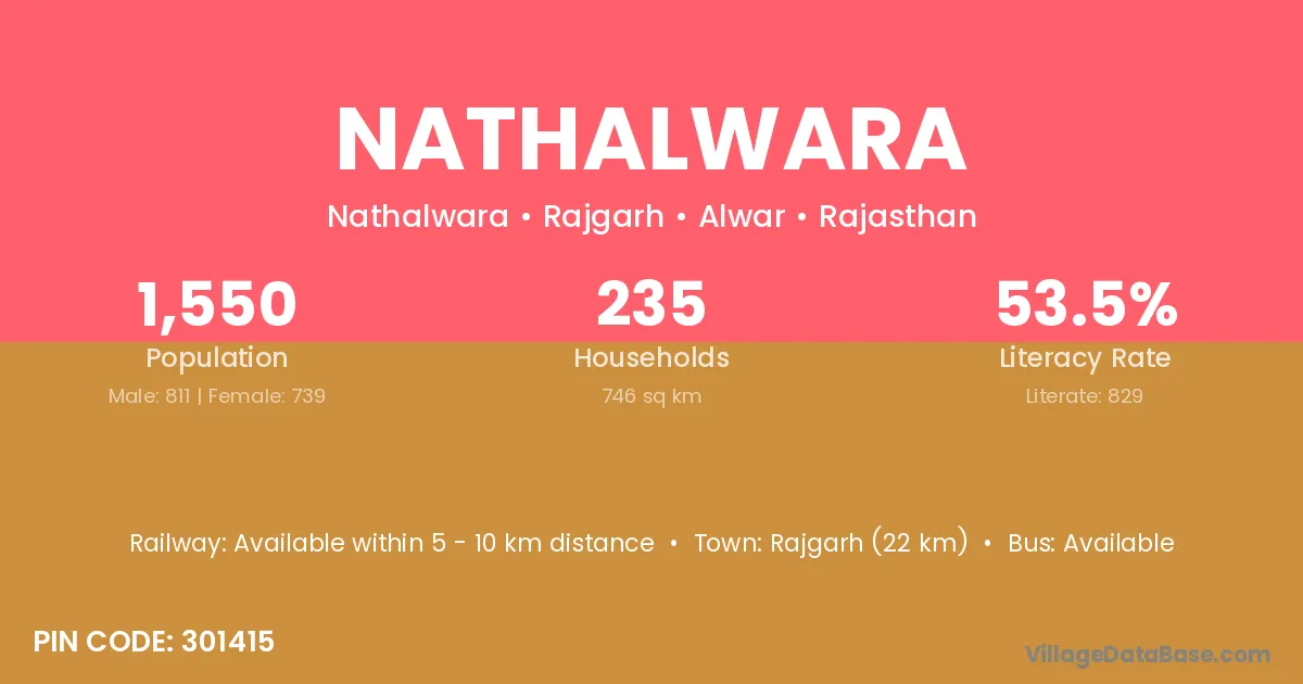 Rajgarh (22 km) is the nearest town to Nathalwara village for major economic activities and is located approximately 22 km away.
