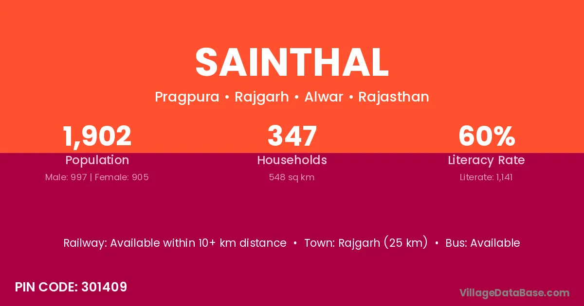 Rajgarh (25 km) is the nearest town to Sainthal village for major economic activities and is located approximately 25 km away.