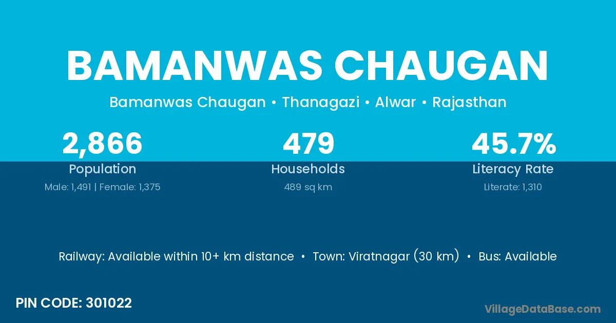 Viratnagar (30 km) is the nearest town to Bamanwas Chaugan village for major economic activities and is located approximately 30 km away.