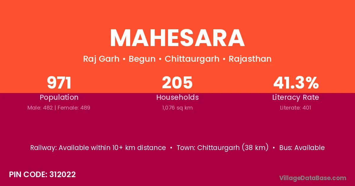 Mahesara village has a total population of 1,484 people, of which 778 are males and 706 are females.