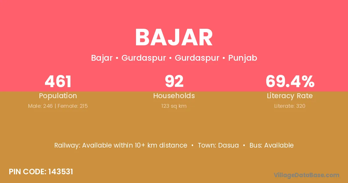 Bajar village has a total population of 1,458 people, of which 744 are males and 714 are females.