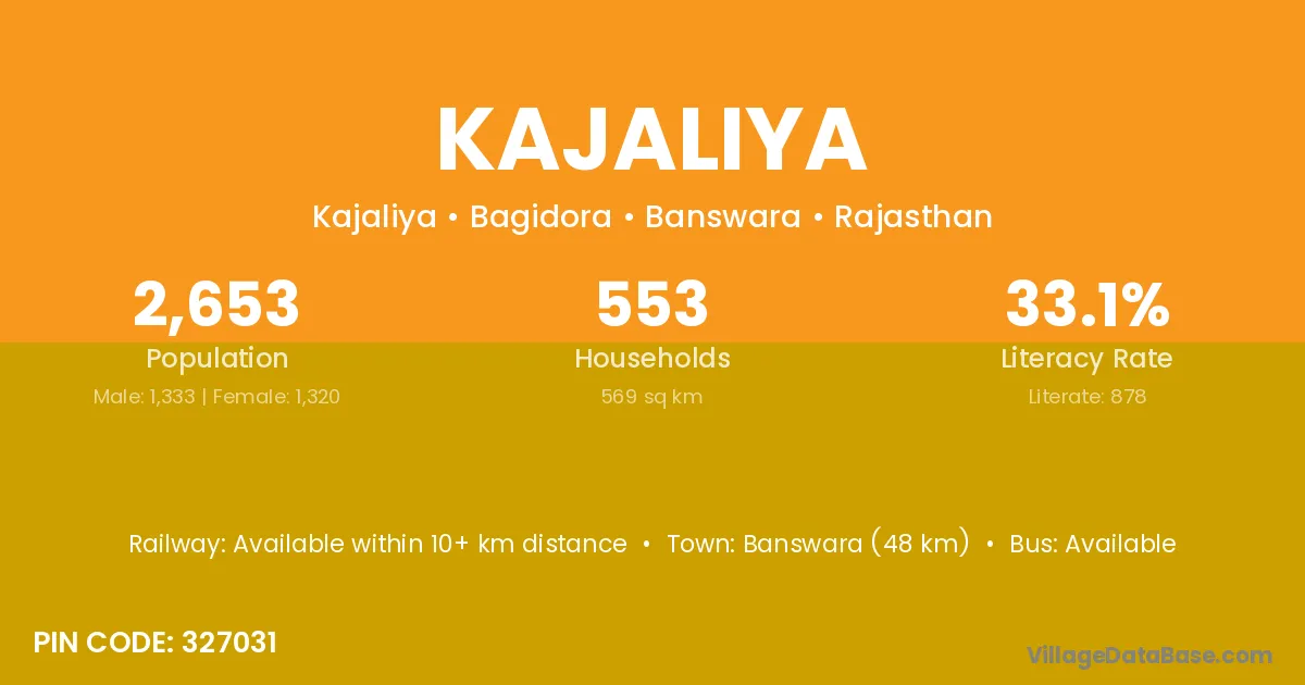 Banswara (48 km) is the nearest town to Kajaliya village for major economic activities and is located approximately 48 km away.