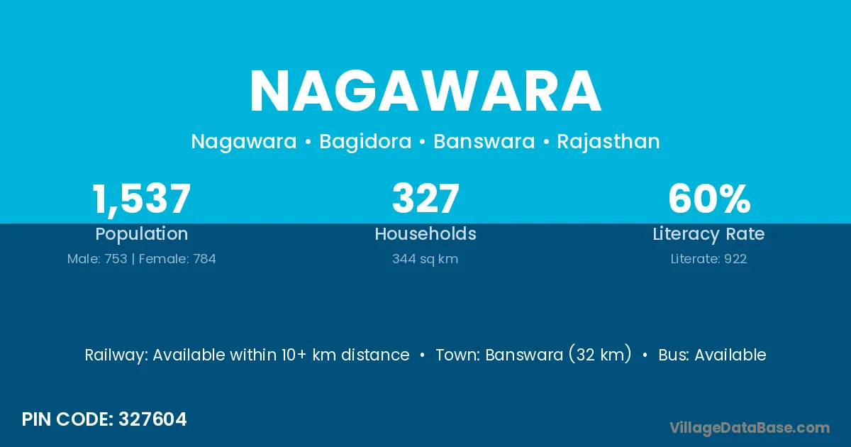 Banswara (32 km) is the nearest town to Nagawara village for major economic activities and is located approximately 32 km away.