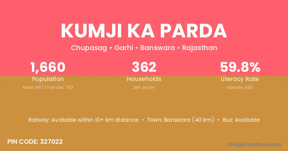 Banswara (40 km) is the nearest town to Kumji Ka Parda village for major economic activities and is located approximately 40 km away.