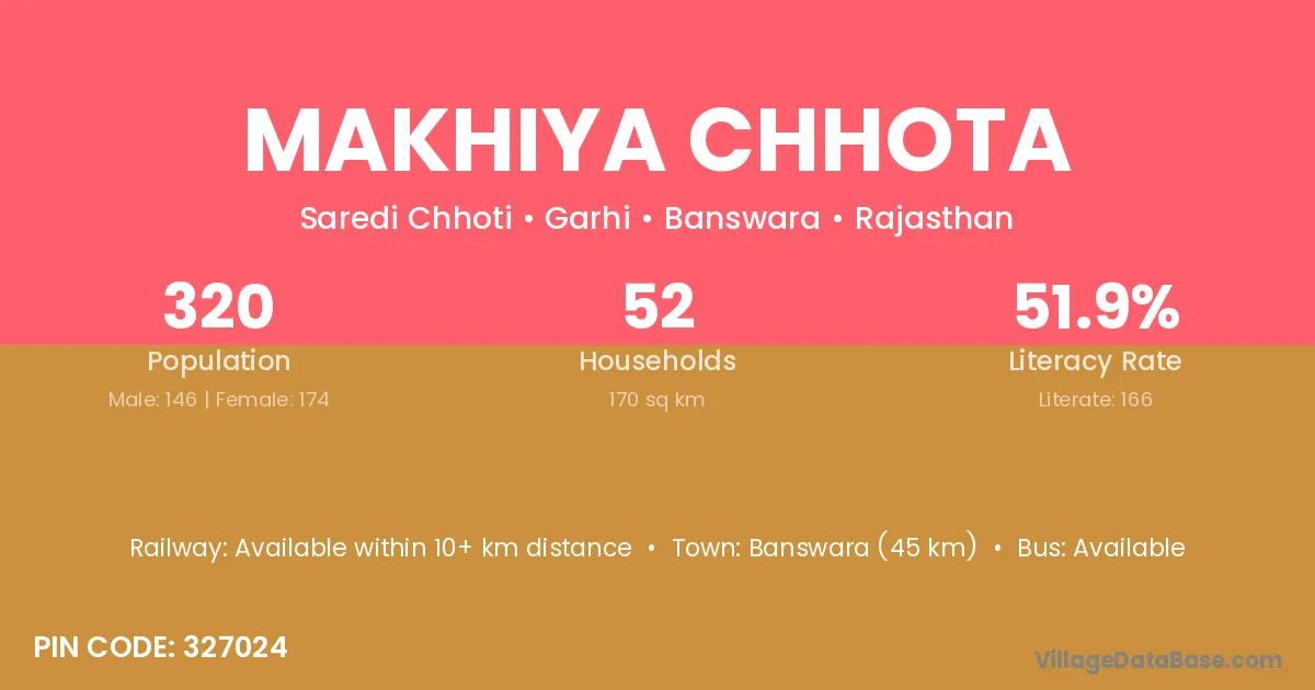 Banswara (45 km) is the nearest town to Makhiya Chhota village for major economic activities and is located approximately 45 km away.