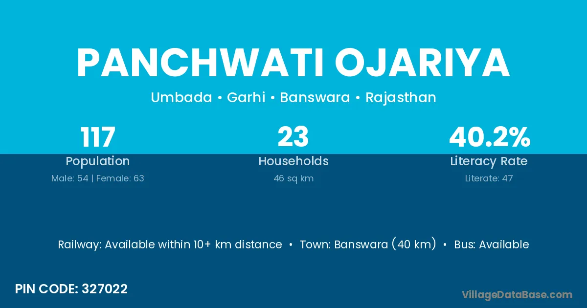 Banswara (40 km) is the nearest town to Panchwati Ojariya village for major economic activities and is located approximately 40 km away.