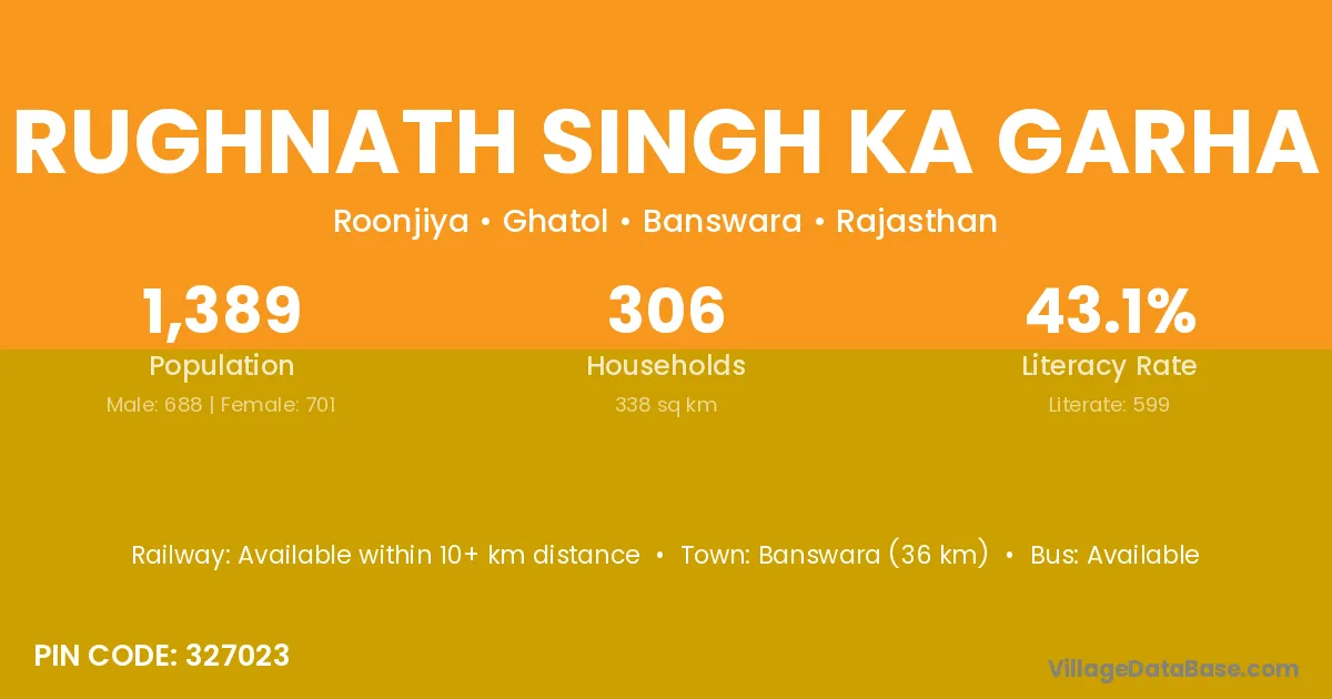 Rughnath Singh Ka Garha village has a total population of 1,389 people, of which 688 are males and 701 are females.
