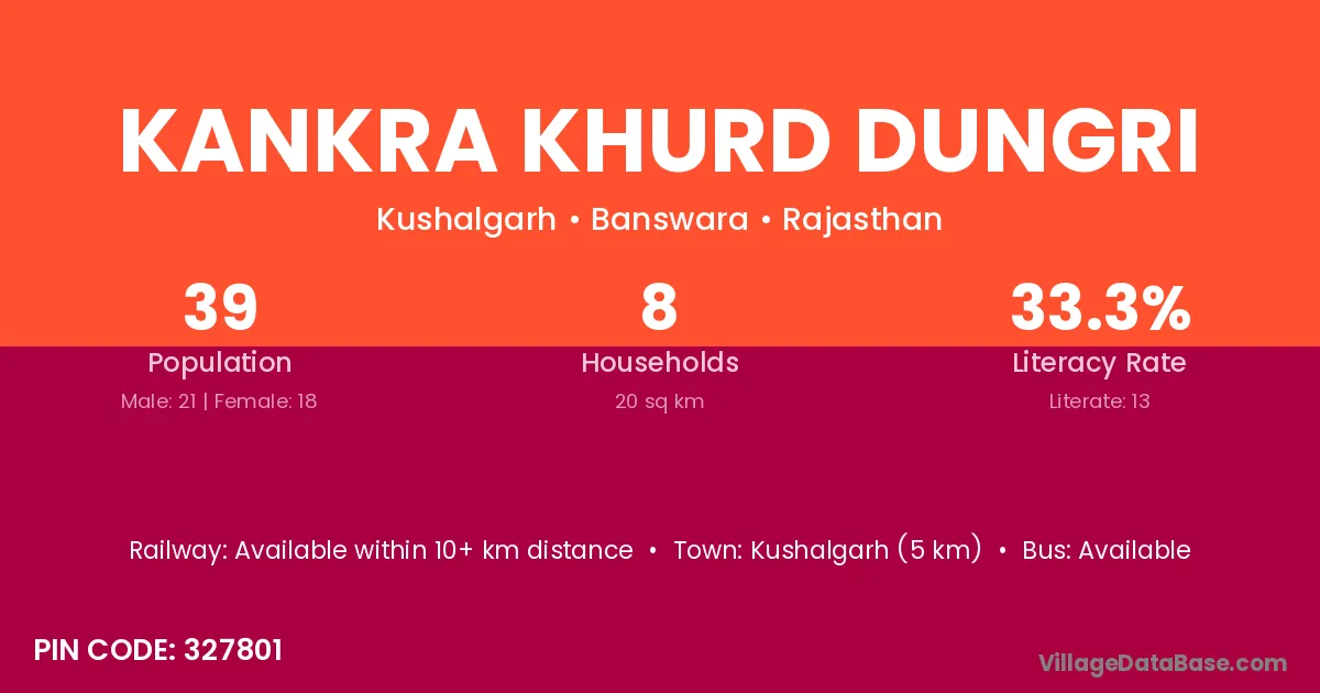Kankra Khurd Dungri village has a total population of 39 people, of which 21 are males and 18 are females.
