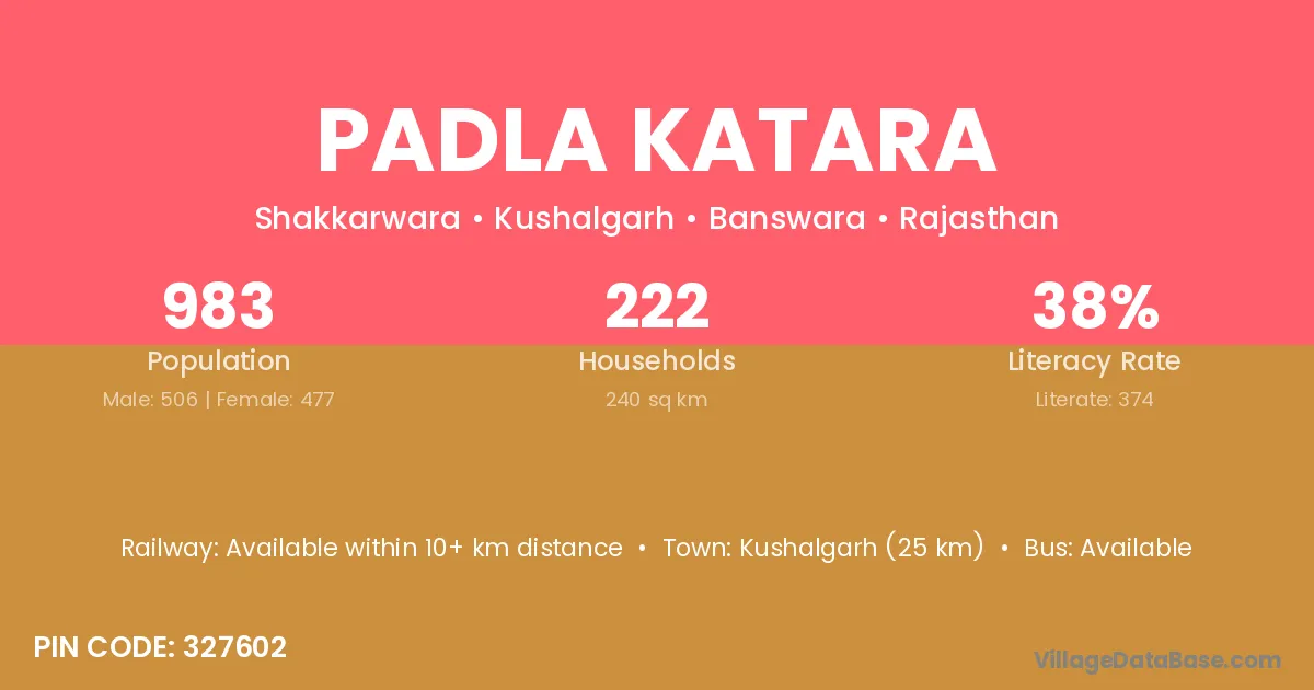 Padla Katara village has a total population of 983 people, of which 506 are males and 477 are females.