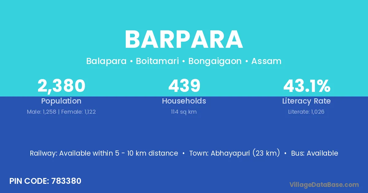 Chhabra (13 km) is the nearest town to Barpara village for major economic activities and is located approximately 13 km away.