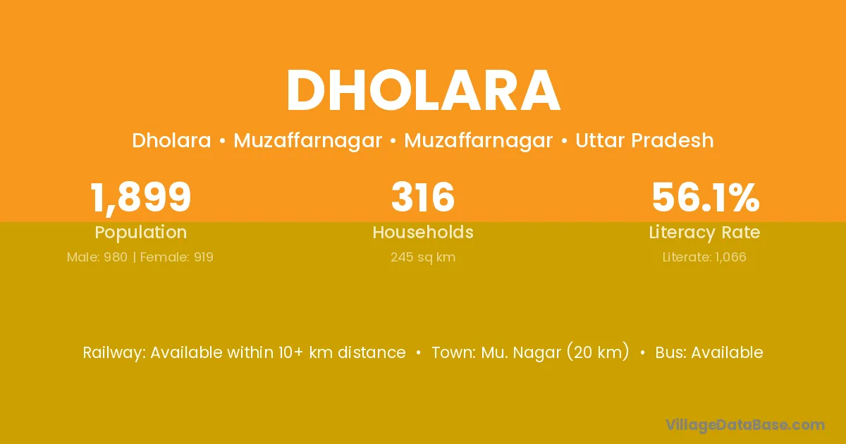 Dholara village has a total population of 429 people, of which 215 are males and 214 are females.