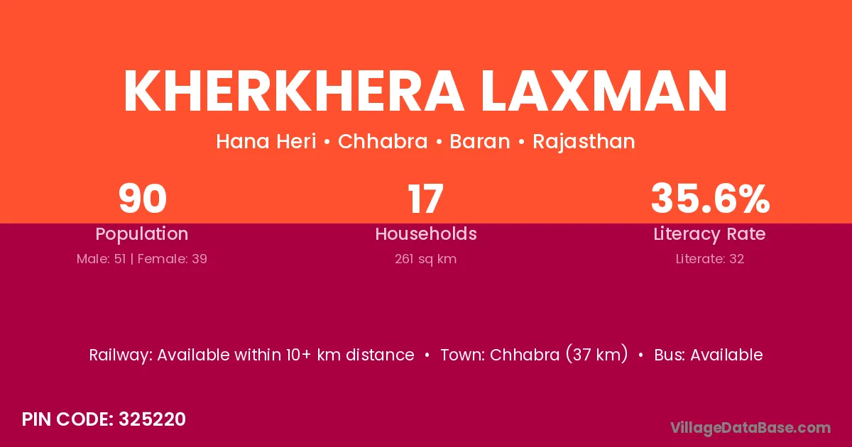 Chhabra (37 km) is the nearest town to Kherkhera Laxman village for major economic activities and is located approximately 37 km away.