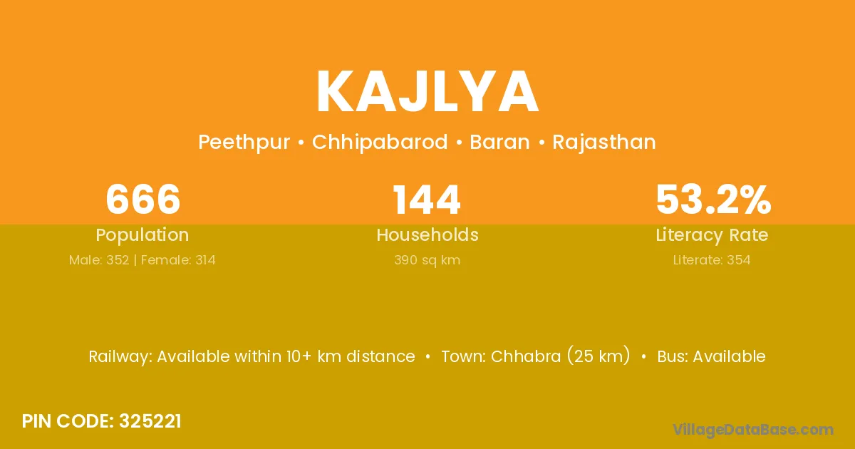 Chhabra (25 km) is the nearest town to Kajlya village for major economic activities and is located approximately 25 km away.