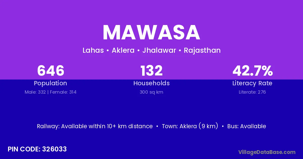 Chhabra (21 km) is the nearest town to Mawasa village for major economic activities and is located approximately 21 km away.