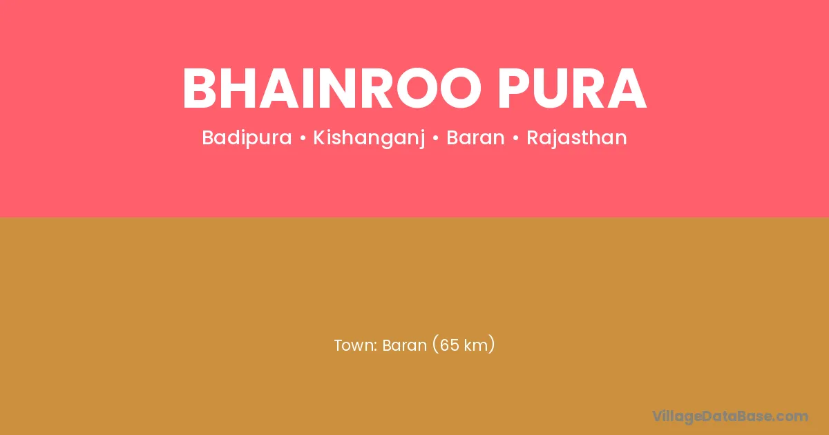 Baran (65 km) is the nearest town to Bhainroo Pura village for major economic activities and is located approximately 65 km away.
