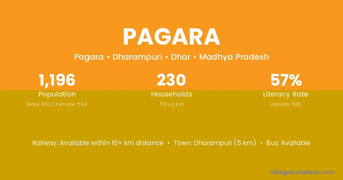 Mangrol (9 km) is the nearest town to Pagara village for major economic activities and is located approximately 9 km away.