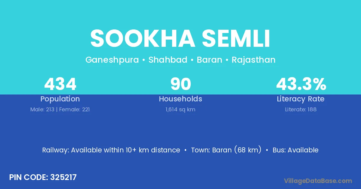Sookha Semli village has a total population of 434 people, of which 213 are males and 221 are females.