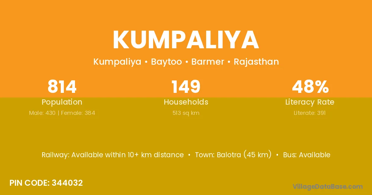 Balotra (45 km) is the nearest town to Kumpaliya village for major economic activities and is located approximately 45 km away.