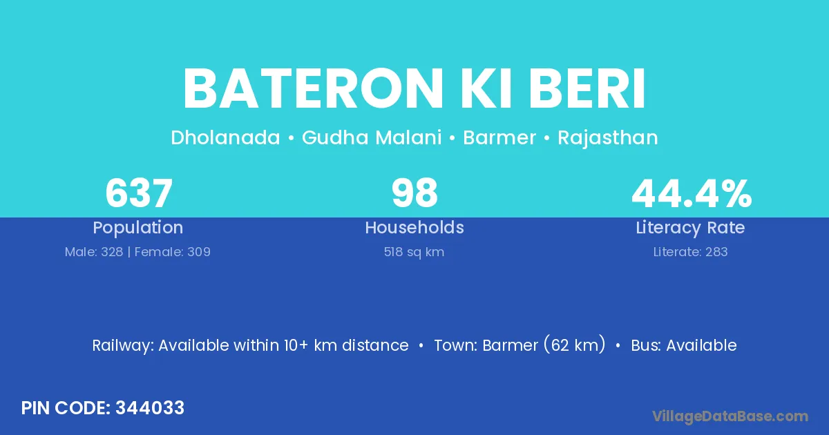 Bateron Ki Beri village has a total population of 637 people, of which 328 are males and 309 are females.