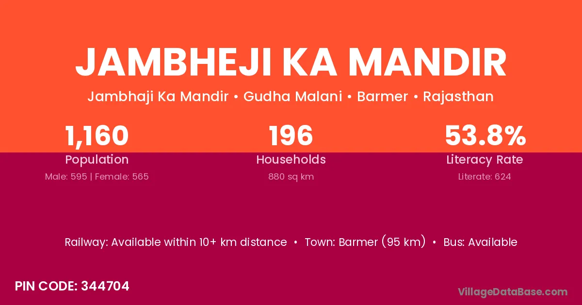 Jambheji Ka Mandir village has a total population of 1,160 people, of which 595 are males and 565 are females.