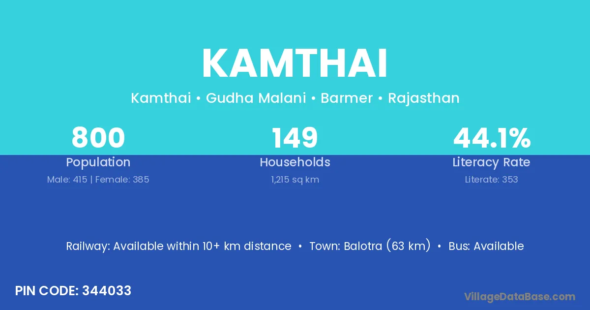 Balotra (63 km) is the nearest town to Kamthai village for major economic activities and is located approximately 63 km away.