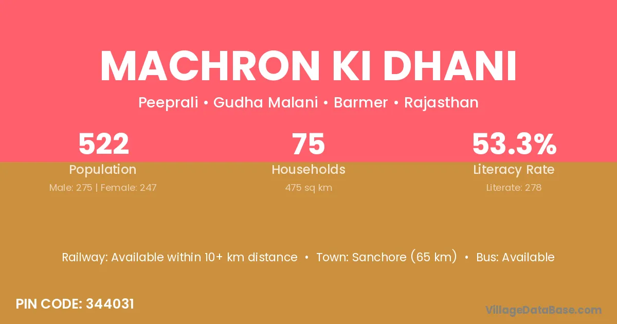 Machron Ki Dhani village has a total population of 522 people, of which 275 are males and 247 are females.