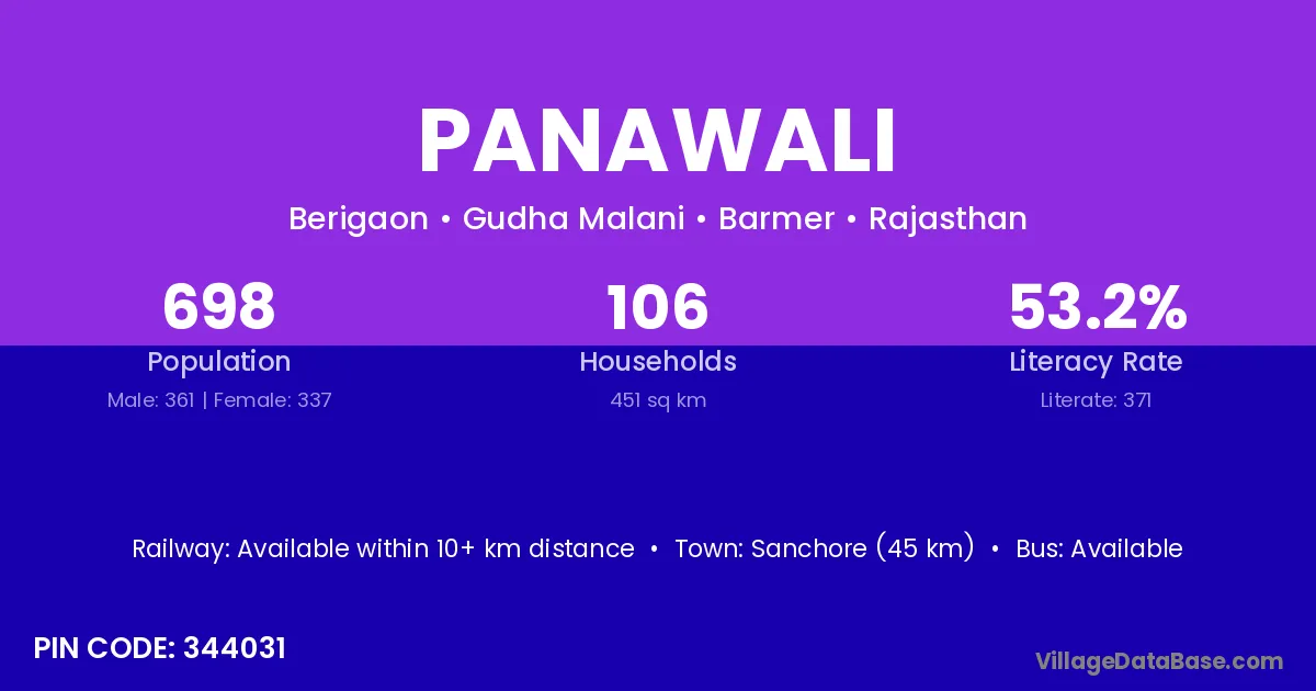 Sanchore (45 km) is the nearest town to Panawali village for major economic activities and is located approximately 45 km away.