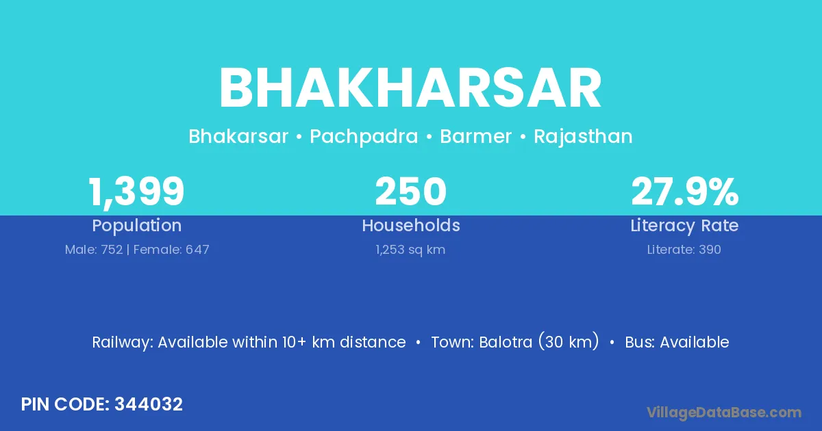 Balotra (30 km) is the nearest town to Bhakharsar village for major economic activities and is located approximately 30 km away.