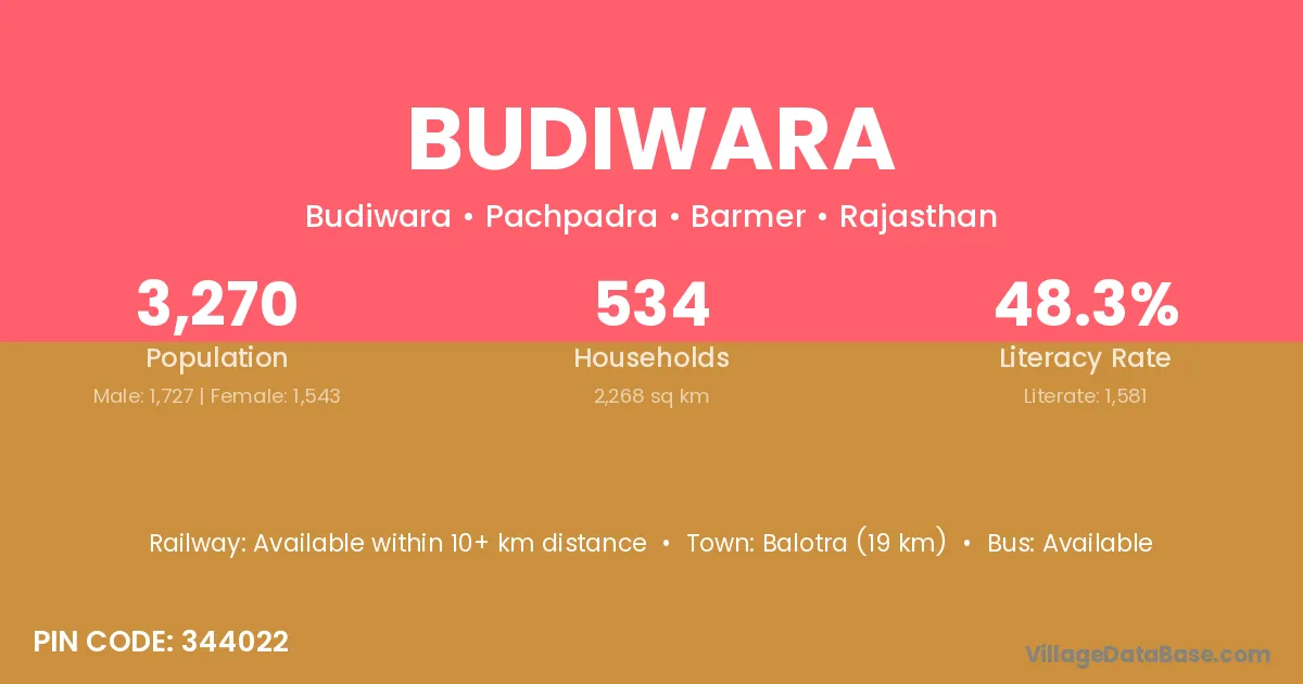 Balotra (19 km) is the nearest town to Budiwara village for major economic activities and is located approximately 19 km away.