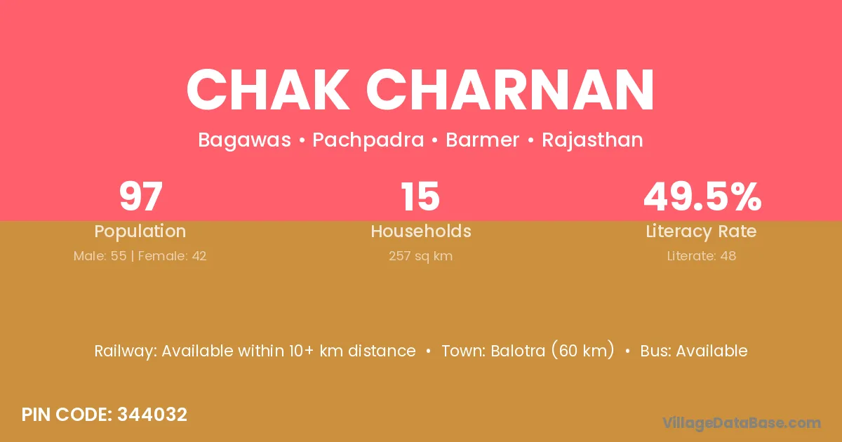 Balotra (60 km) is the nearest town to Chak Charnan village for major economic activities and is located approximately 60 km away.
